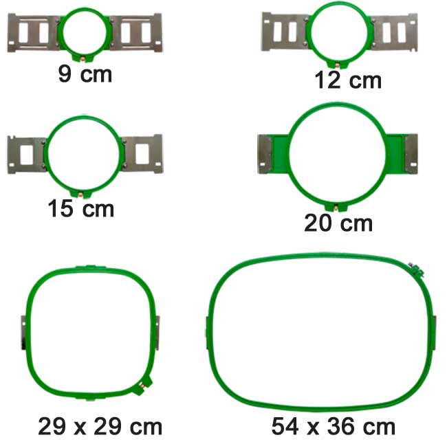 - 12 voreingestellte und frei definierbare Rahmen, verhindern es in den Rahmen zu sticken