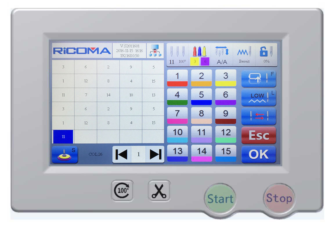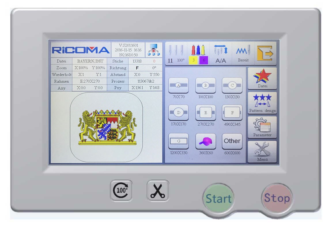 - Das Hauptbedienfeld ist auf der rechten Seite der Stickmaschine, und damit ideal zu erreichen