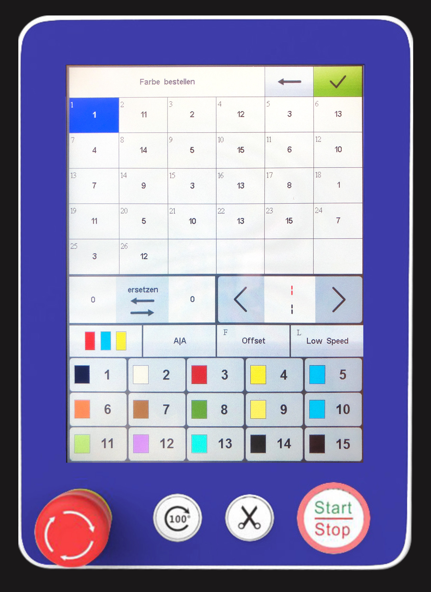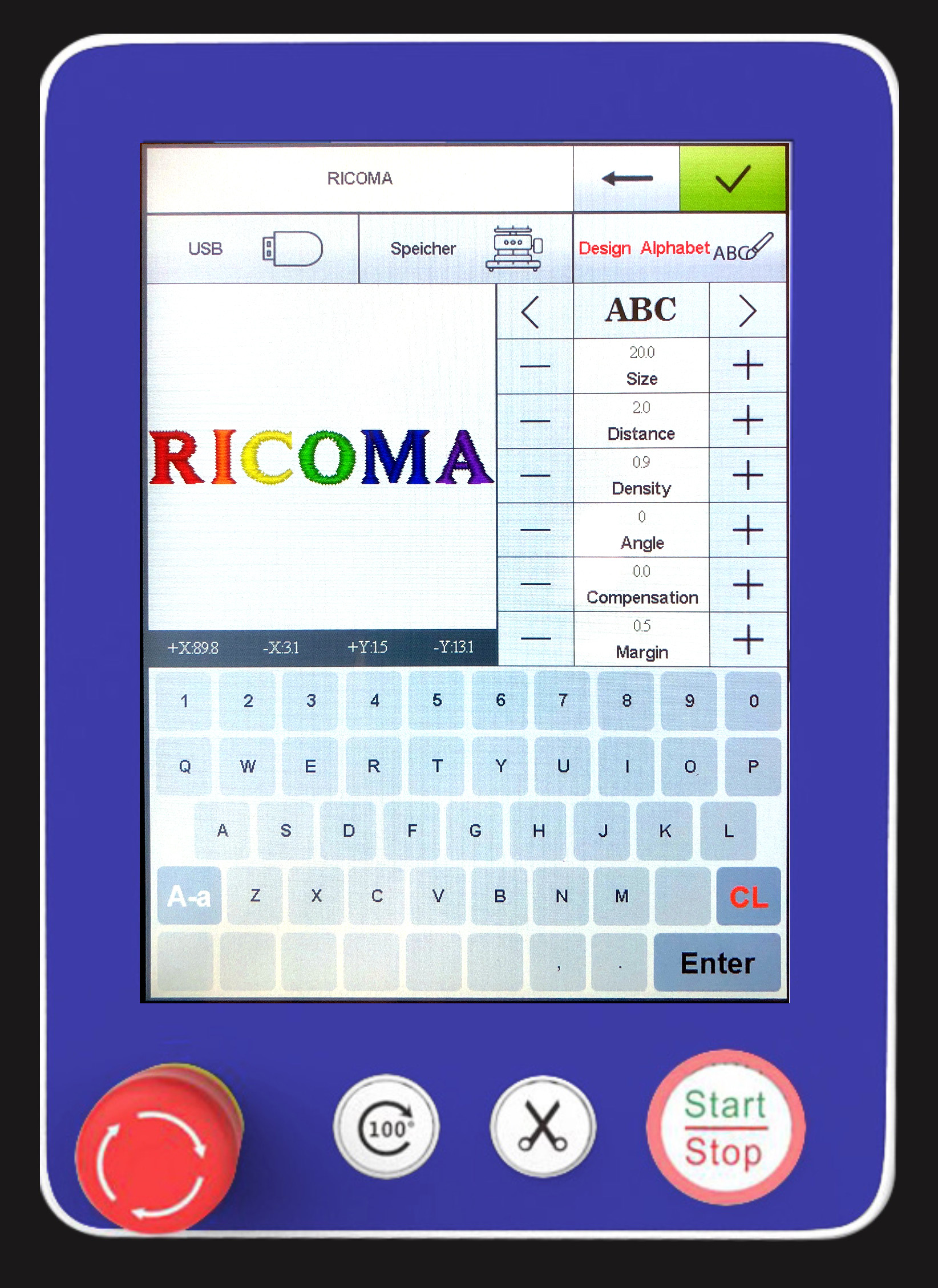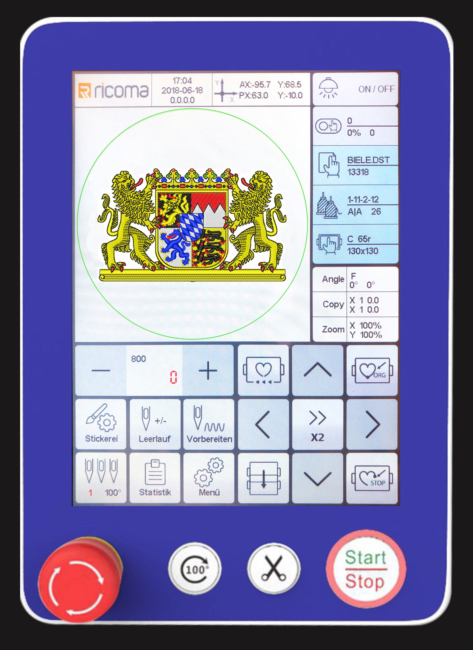 - Das Hauptbedienfeld ist auf der rechten Seite der Stickmaschine, und damit ideal zu erreichen