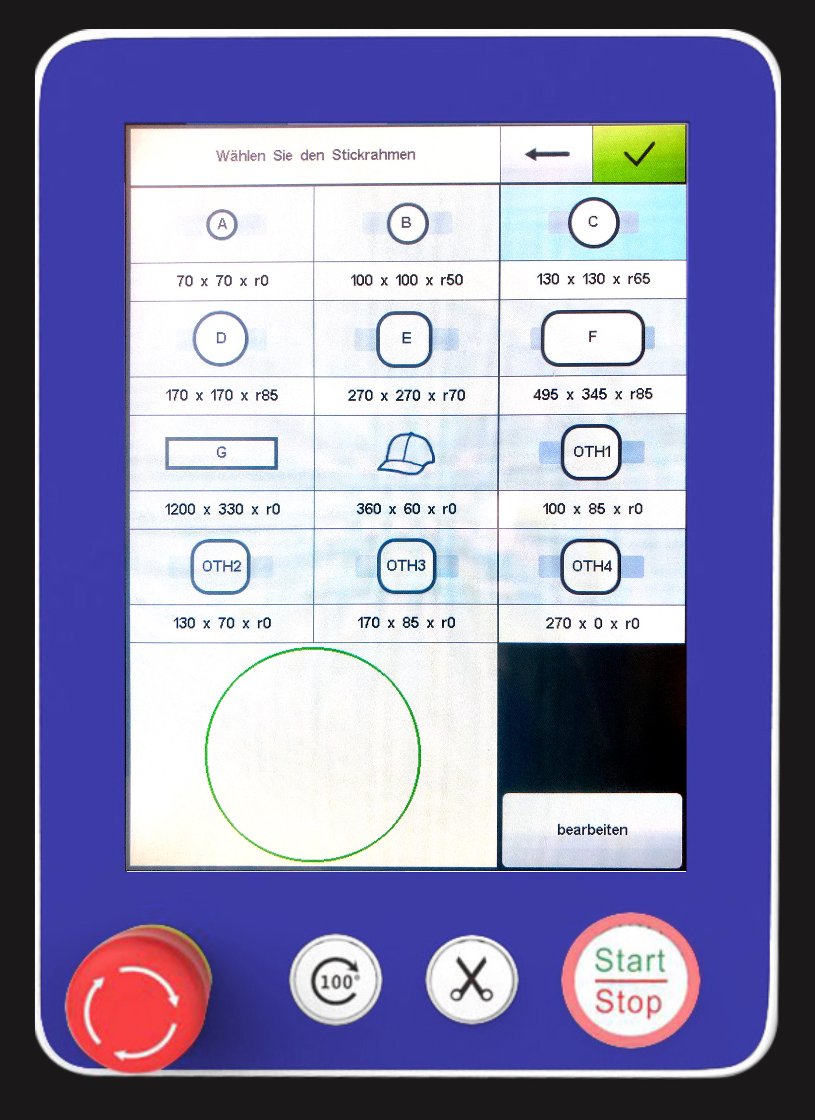 - 12 voreingestellte und frei definierbare Rahmen, verhindern es in den Rahmen zu sticken